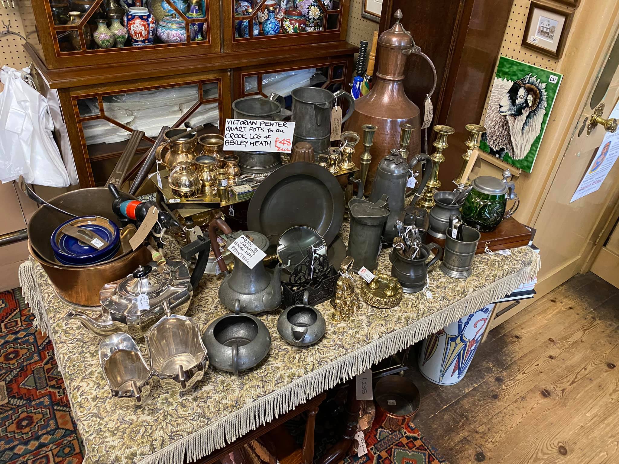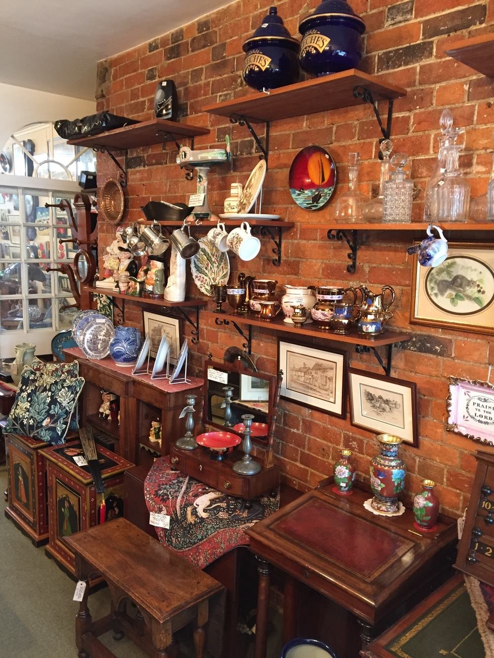 Please pay us a visit on your next trip to St Albans.  Our stock is vast and varied, and includes antiquarian maps and prints, Poole pottery, Anita Harris pottery, Winstanley cats, pewter hollow ware and candlesticks as well as hand painted miniatures, realistic Hansa plush animals, tapestry hangings and cushions, beautiful Tiffany style lamps, smaller furniture items (both antique and refurbished) and much, much more.